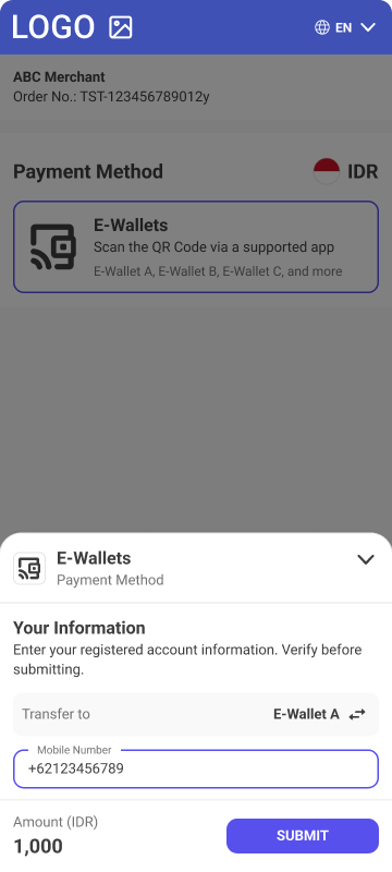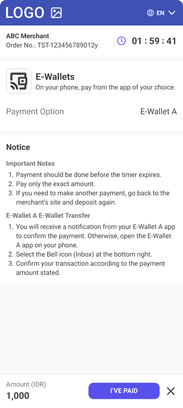 • Description - E-Wallet is payment method on Indonesian market which allows customers to use major Indonesian digital wallets for payments. Customer is either automatically redirected to chosen wallet with all payment details pre-populated to finalize the payment or directly receives push notification to authorize the payment in case of OVO wallet.
