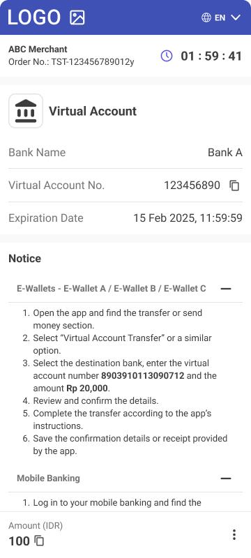 • Description - Virtual Accounts Payment is a popular payment method that requires the customer to transfer funds to virtual bank account via a banking mobile application, internet banking or physically via ATM.