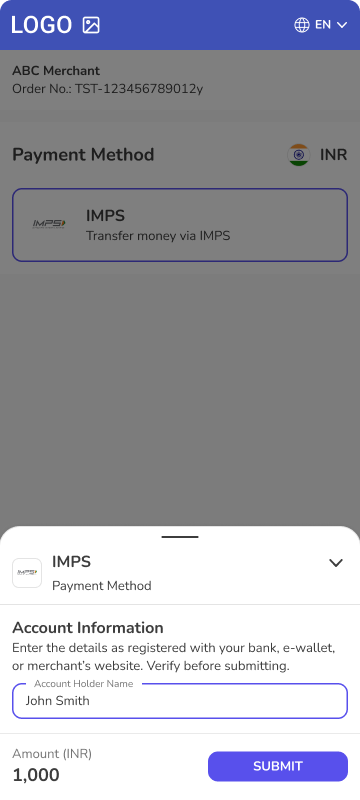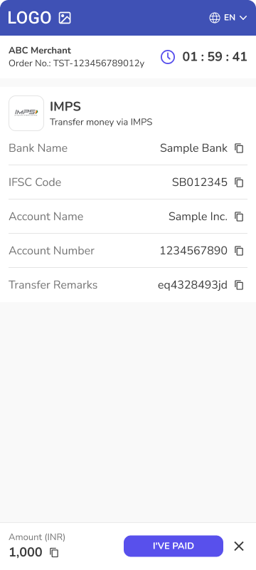 • Description - It is basically Wire Bank Transfer variant for the Indian market when customer is informed during the payment flow with the instruction how to create bank transfer to pay your payment order.