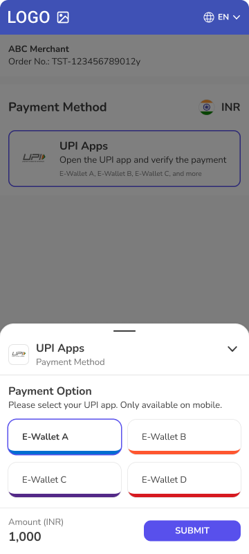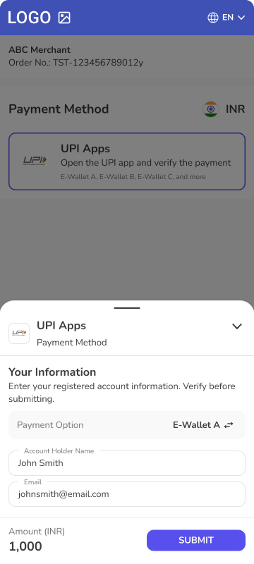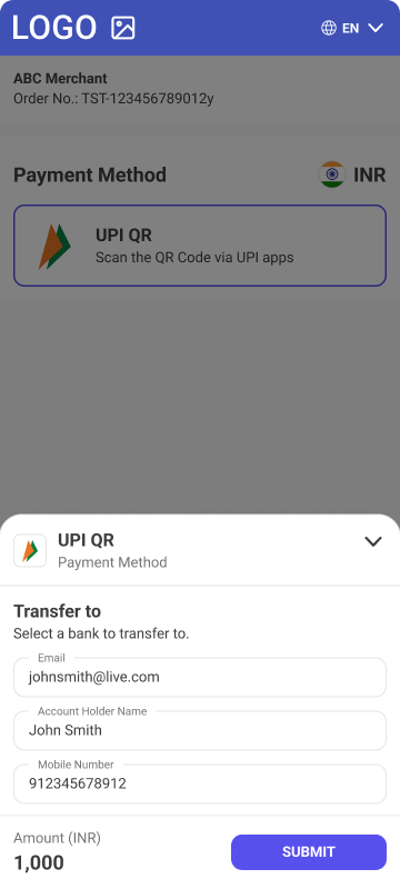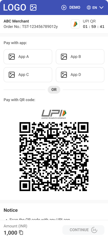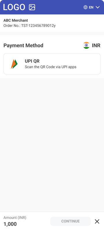 • Description - UPI QR is payment method intended for the Indian market. This payment method requires customers to scan QR code by Customer’s Payment service application compatible with UPI payment schema.