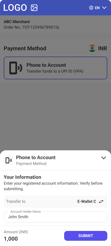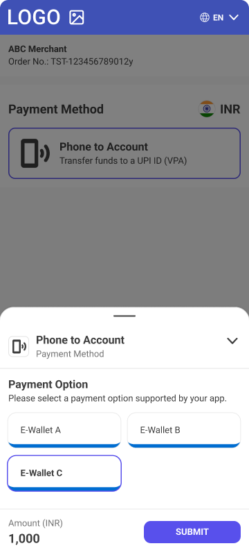 • Description - Phone to Account is payment method designed for the Indian market which allows users of GooglePay and UPI wallets to pay using scanning QR codes.