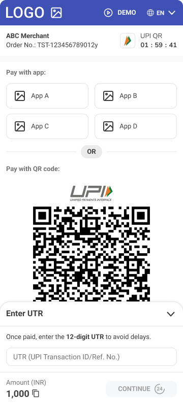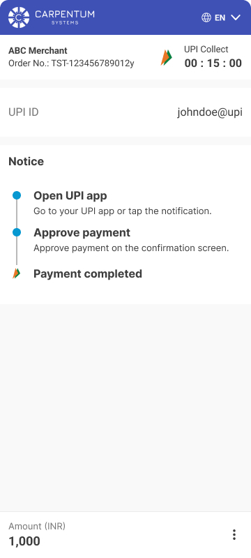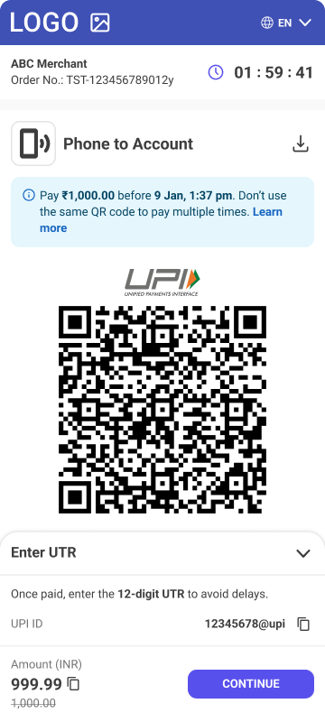• External payment reference - Not required to provide the external payment reference (UTR) during the payment completion if customer’s UPI ID is provided.