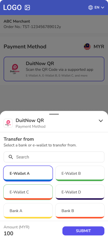 • External payment reference - Not required to provide the external payment reference during the payment completion. Payment amount to be sent has to be amount from DuitNowMethodResponse.moneyRequired to successfully recognise the payment request.