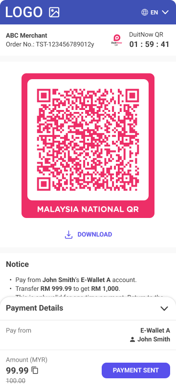 • Description - DuitNow QR is payment method intended for the Malaysian market which allows users of DuitNow compatible online services to send payments to recipient’s DuitNow ID using scanning QR code.