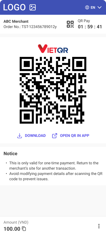• Description - Viet QR is a payment method intended for the Vietnamese market which allows customers to pay using scanning QR codes by theirs payment application or internet banking.