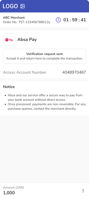 • Description - Absa Pay offers a simple, quick and secure way to make payments without needing to input banking login details. Customers can select their preferred account for payment and securely authorize the transaction through the banking app.