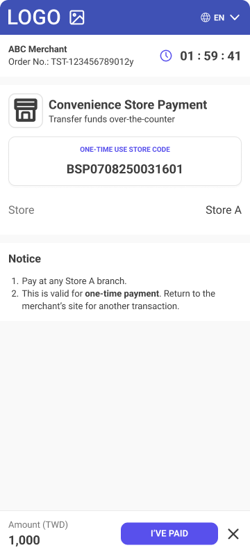 • Description - Convenience Store Payment is a popular payment method in Taiwan. It allows customers to pay physically at convenience stores using a one-time payment code.