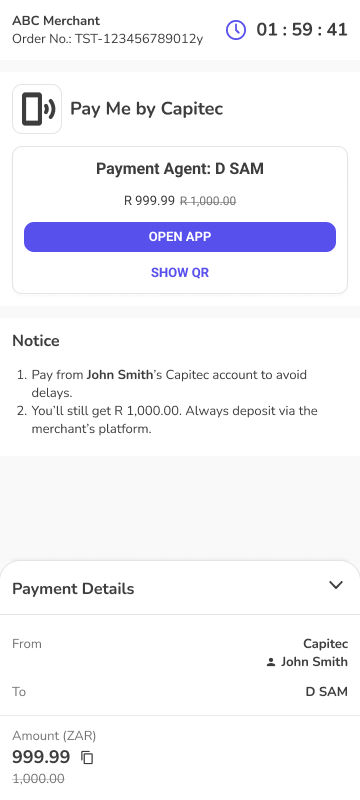 • Description - Pay Me is a payment method intended for South African market which allows customers to send payments by simply scanning QR codes using Capitec Bank app. This payment method is available only for payments between Capitec clients.