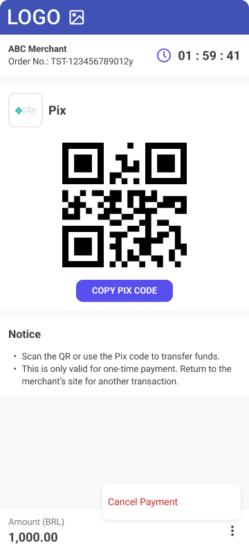 • Description - Pix is a Brazilian payment method which allows customers to send payments using their peferred banking app by either scanning QR code or copy-pasting Pix EMV code.